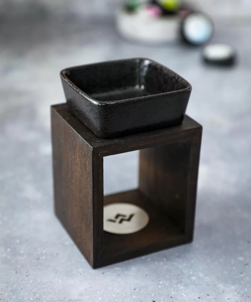 Die hölzerne Einfassung wird von einer quadratischen Keramikschale gekrönt, in der Sie Ihre Duftwachse schmelzen werden. In diesem Fall haben wir beschlossen, uns auf Ihre Entscheidung zu verlassen, so dass Sie aus 5 verschiedenen Arten von Schalen wählen können. Jeder kann die Schale wählen, die am besten zu seiner Einrichtung passt.